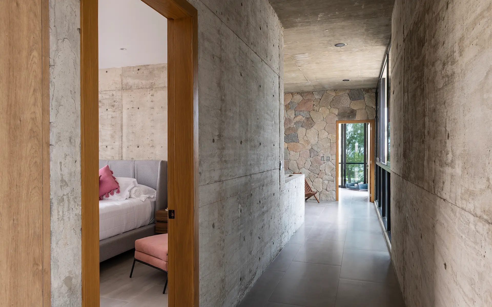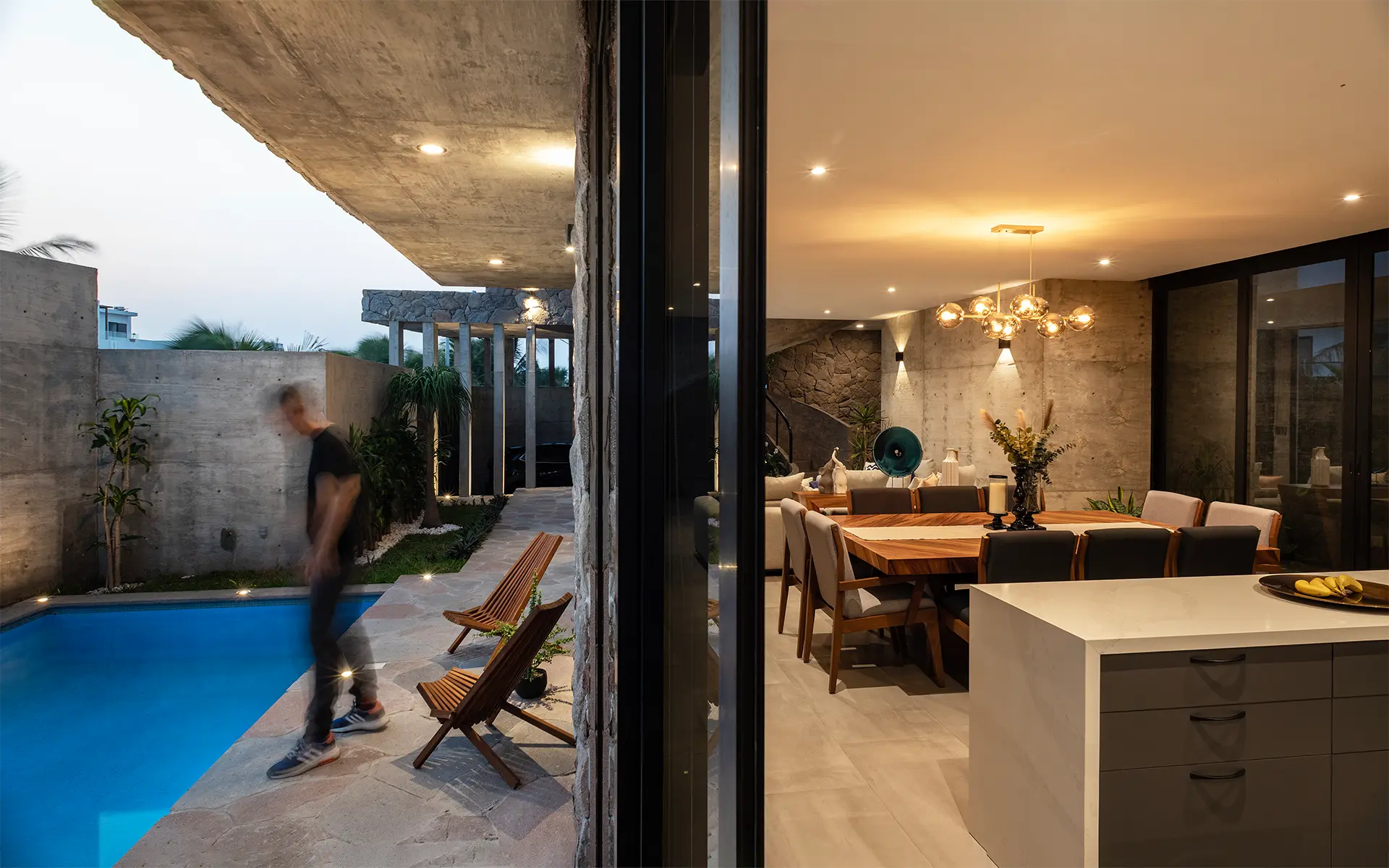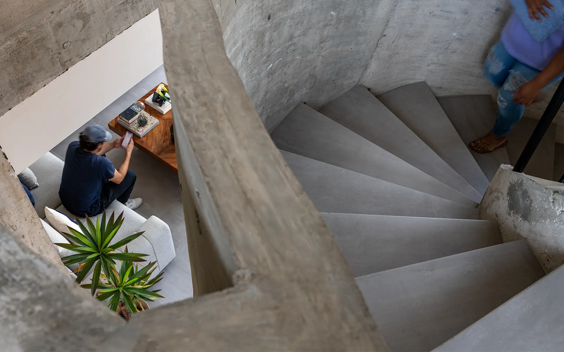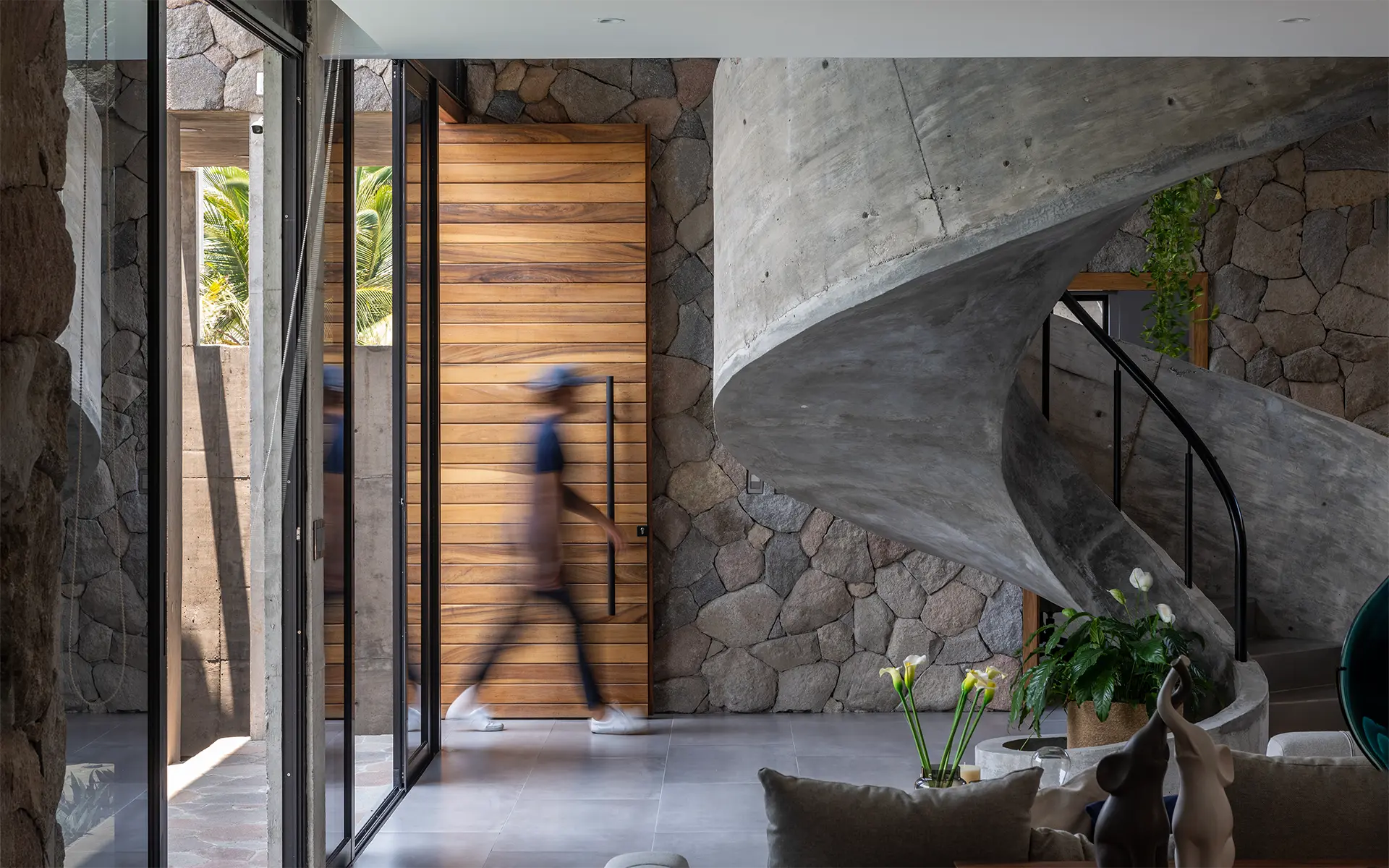 La escalera central, concebida como pieza escultórica, organiza el recorrido y define la atmósfera interior. Materiales naturales y una distribución fluida generan continuidad entre interior y exterior, reforzando la idea de habitar de manera abierta y conectada. Casa Blvd. Mandinga es prueba de que un diseño preciso y bien ejecutado puede transformar la experiencia de vivienda.
