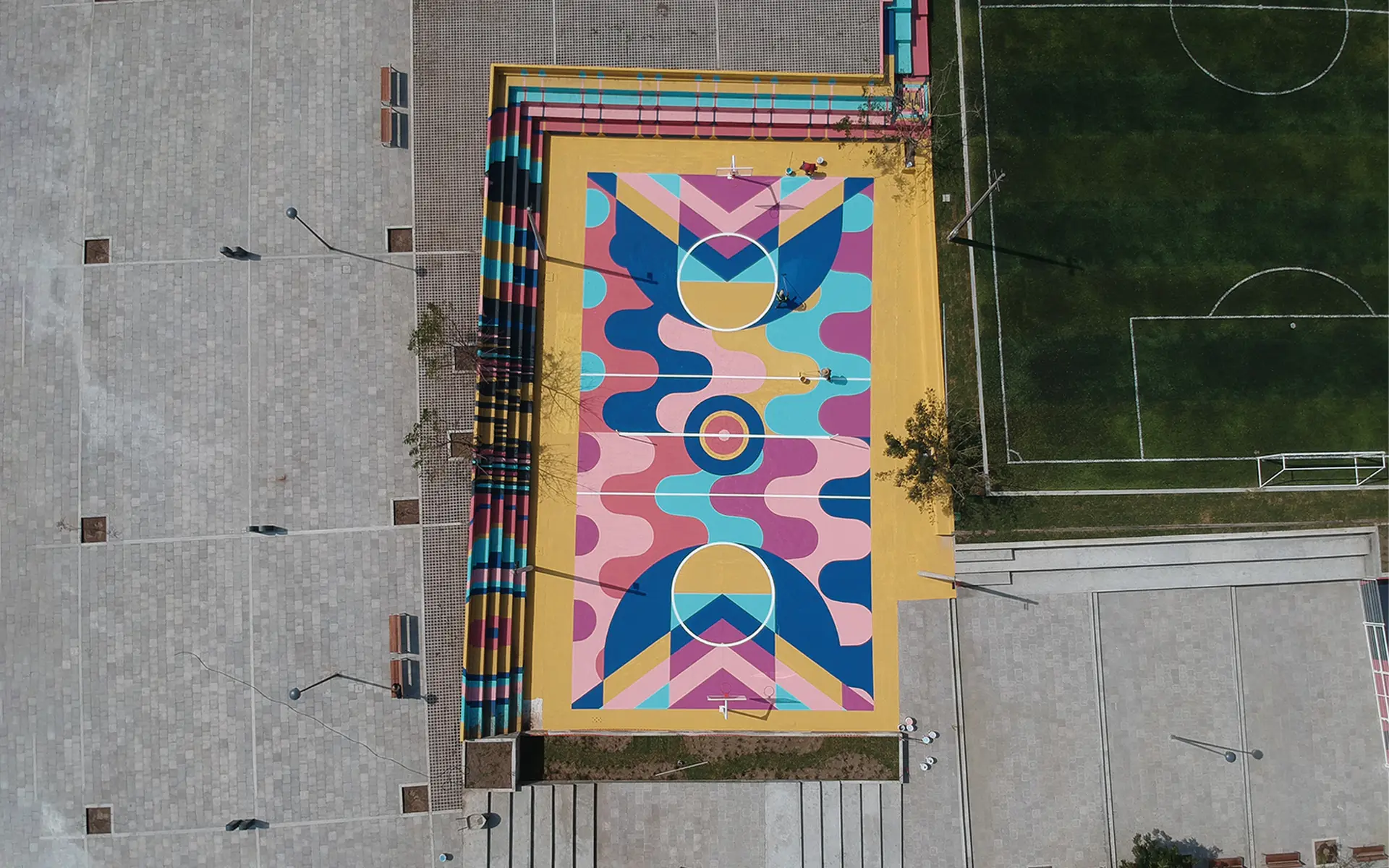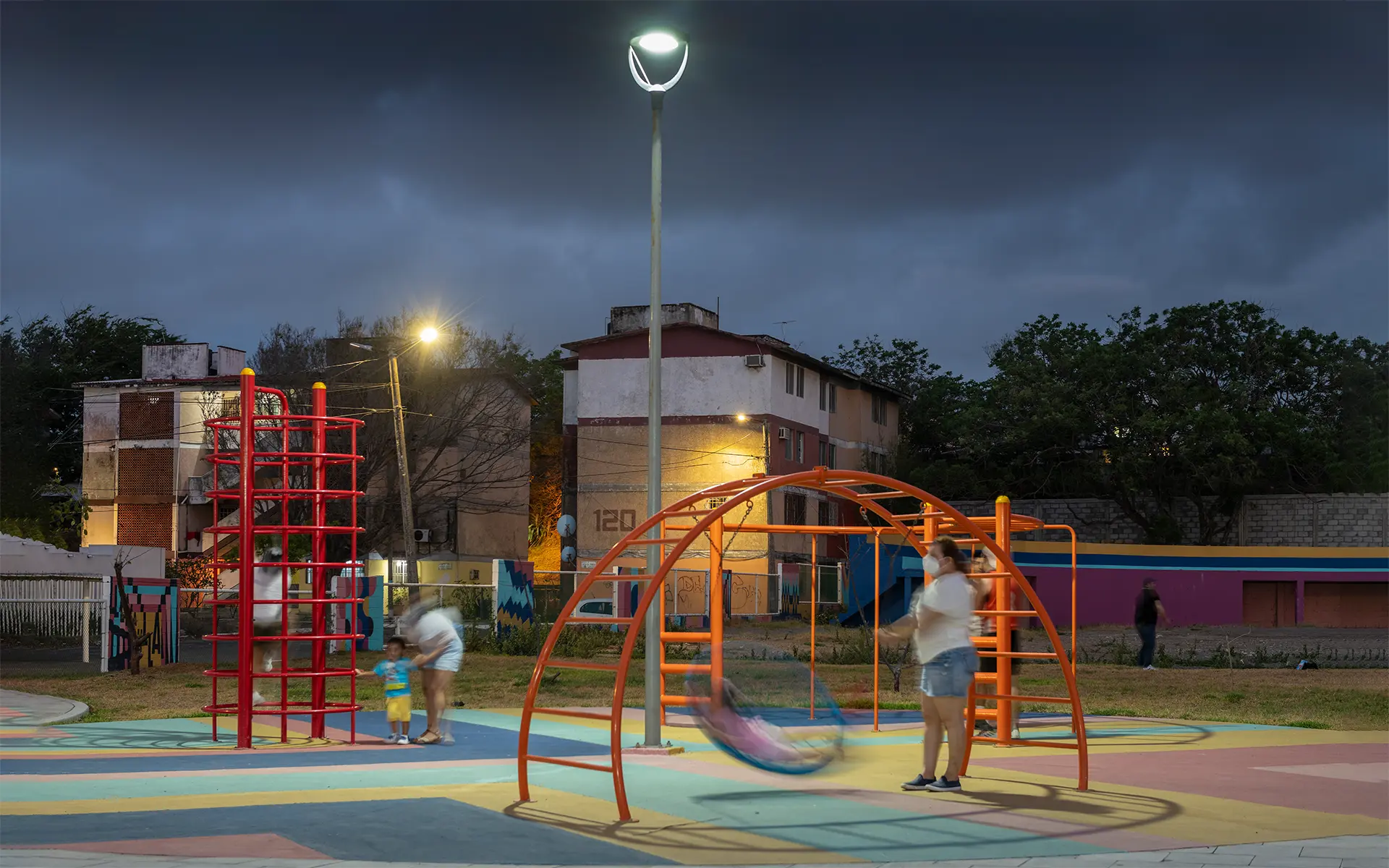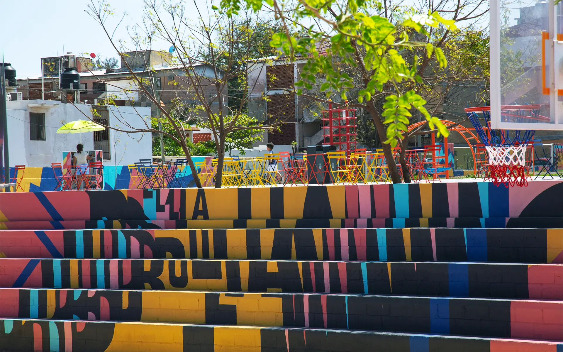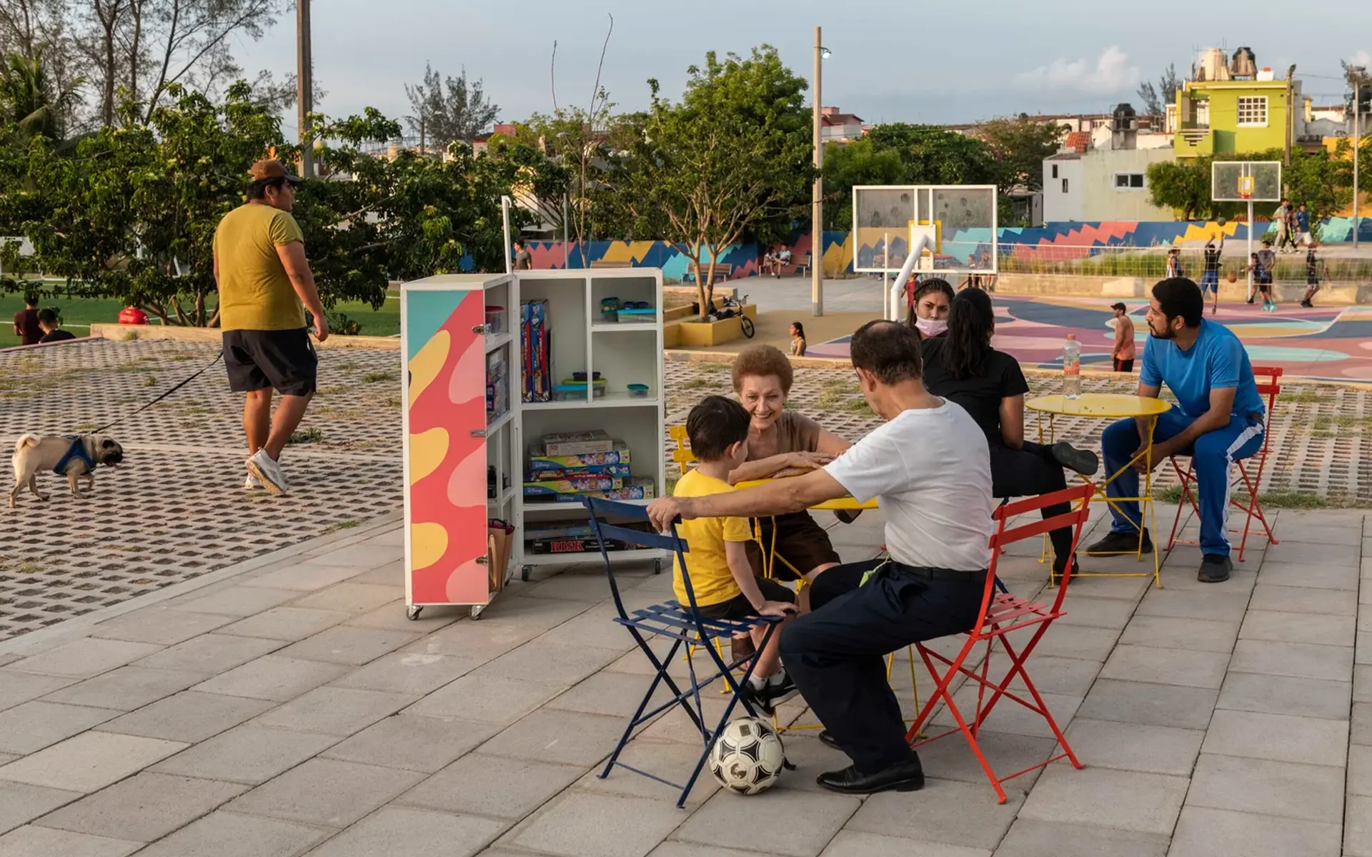 La intervención abarcó 6,000 m² e incluyó canchas renovadas, juegos infantiles, áreas verdes, mobiliario urbano, módulos para actividades culturales y un parque de 2,500 m². La identidad visual, creada a partir de los colores, ritmos y energía de los jarochos, convierte el espacio en un escenario de convivencia, deporte y cultura. “La Bulla” es hoy un punto de encuentro que refuerza la identidad local y transforma la percepción de la zona.